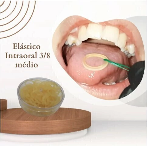 Modo de Usar: coloca-se o elástico na língua e, através de movimentos ântero-posterior, o elástico terá que sair espontaneamente. Também é indicado como auxílio na automatização de postura de língua na região da papila palatina.