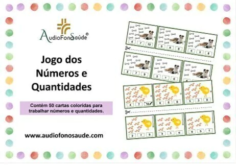 • O arquivo contém 50 cartas coloridas para trabalhar números e quantidades. Habilidades desenvolvidas: