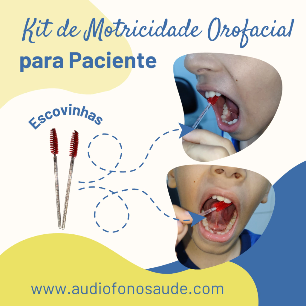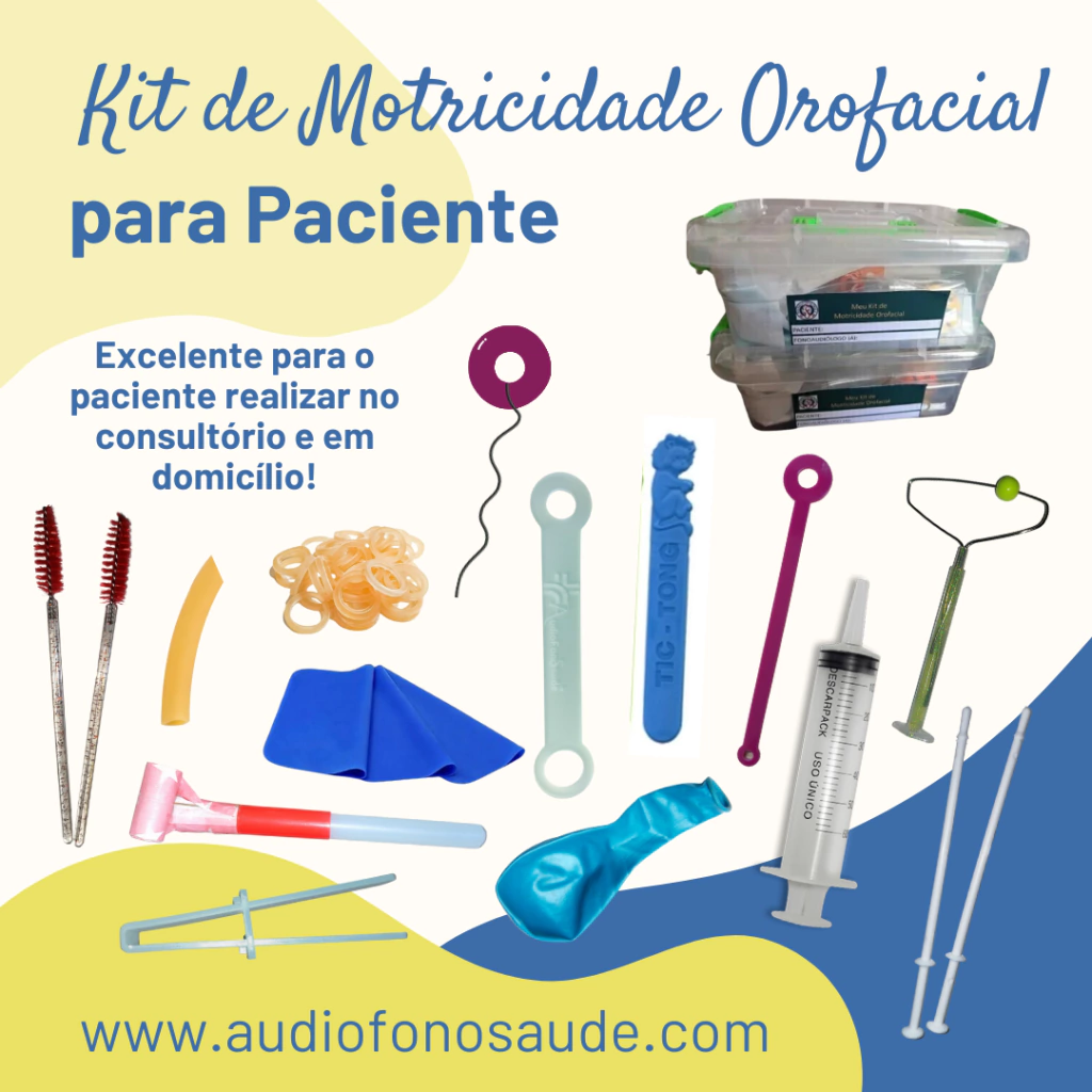 Kit básico para o paciente realizar os exercícios oromiofuncionais em domicílio e no consultório.